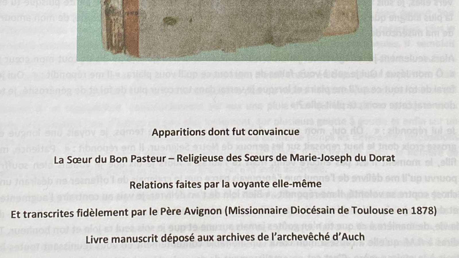 Information : Fin 2002, le manuscrit des évènements intitulé VISIONS ET APPARITIONS TOUCHANT NOTRE DAME D'ARNAUD-GUILHEM fut retrouvé par les archivistes du diocèse d’Auch à la suite d'une demande de M. Charles Bisaro directeur émérite des pèlerinages de l’archidiocèse de Toulouse qui effectuait des recherches, en approfondissement du sujet avec l'autorisation de son Archevêque Mgr Emile Marcus. Il compte plus de 400 pages.
