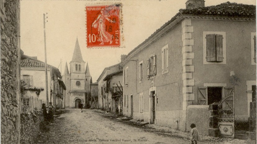 Ce bourg est donc une unique rue encadrée par une rangée de maisons, rarement doublée, qui amène à l’église. Celle-ci se voit pratiquement dès l’entrée dans le village car son clocher vient d’être remodelé et surélevé dans la période 1858-1860 et ce à l’instigation du conseil municipal, présidé par Augustin Bernadet, le maire, et aussi grâce aux efforts des paroissiens guidés par le curé Jean Baron, qui décèdera en 1860.